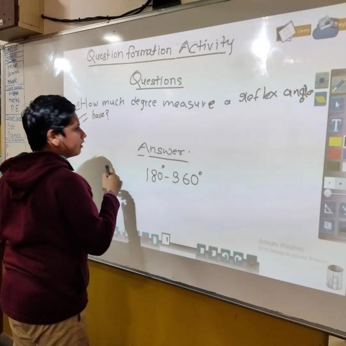 ACTIVITY 1: QUESTION MANIA - Usually teachers come up with the questions in the class during the sessions and seek responses but on the second day of the Math’s week, it was the other way round. The teacher came up with the answers and asked students to frame questions related to the answers through Question Mania activity. It was quite surprising to see that for one answer; a variety of questions were provided by the students of class 6. Through this activity the students were able to obtain, interpret, and use knowledge, facts, and data to build up the questions and demonstrate creativity and inventiveness either individually or collaboratively.